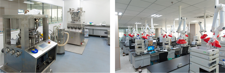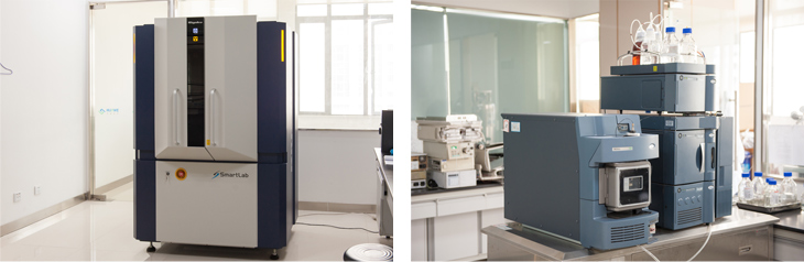 研发中心化学部门拥有150余个全钢通风橱及常规有机合成装置;高温及低温反应装置(5L~100L;-70~+200℃),惰性气体保护及无水无氧反应系统;0.5L-20L高压氢化反应釜;API生产基地具备数十台100L-1000L反应釜及200L高压氢化反应釜;信息中心拥有SciFinder, Reaxys等专业数据库来支持各项研发需求,使用CBIS系统数据库来储存和管理内部数据。研发中心质量分析和药物制剂部门主要仪器设备均为国际国内知名品牌: