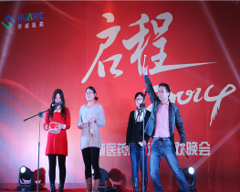 2014年1月18日,华威医药“启程?2014”新春联欢晚会在南京威斯汀酒店隆重举行。15:38,在主持人的新年祝福声中,150余位与会嘉宾共同观看了“我们一起走过的2013”开场视频,共同分享和回顾了华威医药2013年在多方面取得的优异成绩和精彩瞬间。自编自导的精彩演出、美酒佳肴、幸运大抽奖等活动让5个多小时的晚会充满了惊喜与欢乐!在晚会的进行过程中,同时举行了华威医药 “2013年度榜样盛典”颁奖仪式,对2013年度的优秀员工、劳动模范、优秀团队等华威榜样进行了表彰和奖励。21:00,在难忘今宵的欢声笑语中,华威同仁们一起祝福和期待重新启程的华威医药2014年……