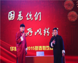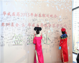 2015年2月8日,华威医药“因为你们?所以精彩”新春联欢晚会在南京金奥费尔蒙酒店隆重举行。下午16点整,南京市栖霞区委领导、江苏生命科技创新园管委会领导、江苏高科技投资集团领导、礼来亚洲基金领导及华威医药全体同仁共250余位嘉宾出席华威医药年度盛宴。在晚会主持人的新春祝福声中,与会嘉宾共同观看了“我们的2014”开场视频,共同分享和回顾了华威医药2014年度在各方面取得的优异成绩和精彩瞬间。