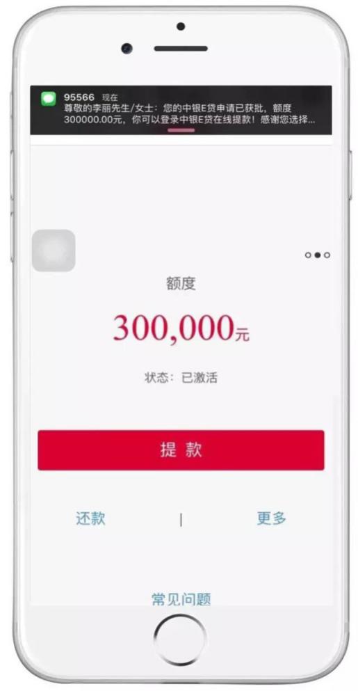 第五步:当页面显示“审批中”,请耐心等待几分钟,当最终收到中行95566客服短信后,即已完成您的中银E贷额度审批。