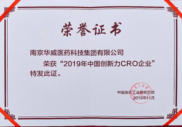 无锡药明康德新药开发股份有限公司、杭州泰格医药科技股份有限公司、南京华威医药科技集团有限公司等10家企业入榜“2019年中国创新力CRO企业”。