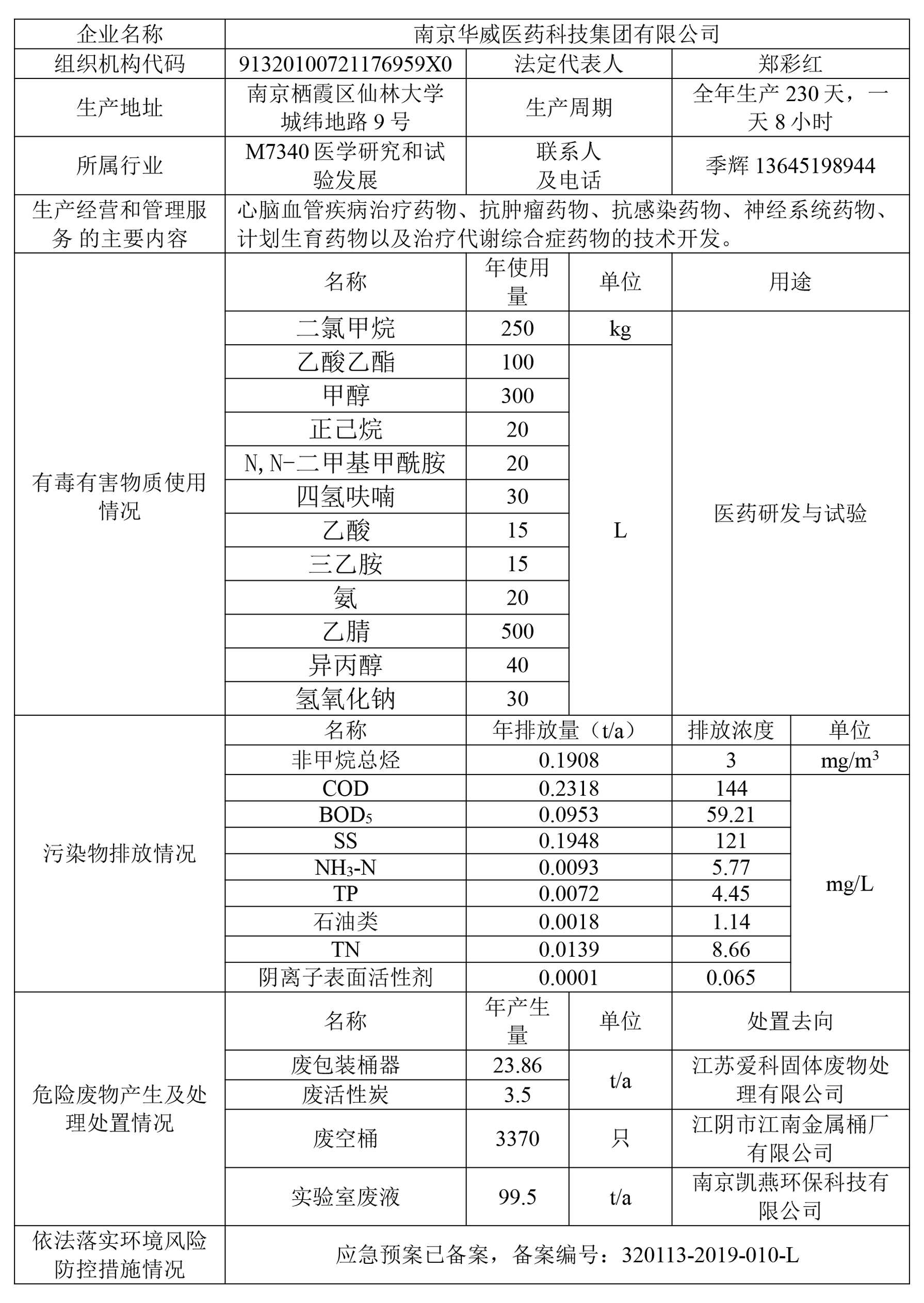 南京华威医药科技集团有限公司清洁生产审核环境信息公开表