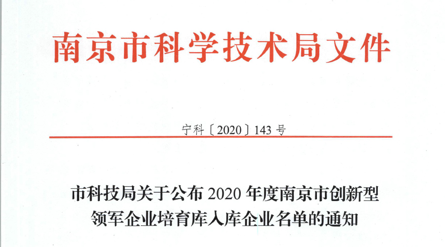 2020年度南京市创新型领军企业培育库计划