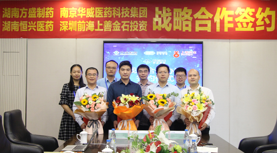 9月26日,南京华威医药科技集团有限公司与湖南方盛制药股份有限公司、深圳前海上善金石投资管理有限公司、湖南恒兴医药科技有限公司在南京举行全面战略合作签约仪式。