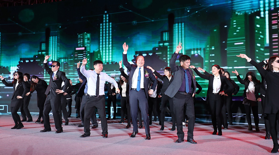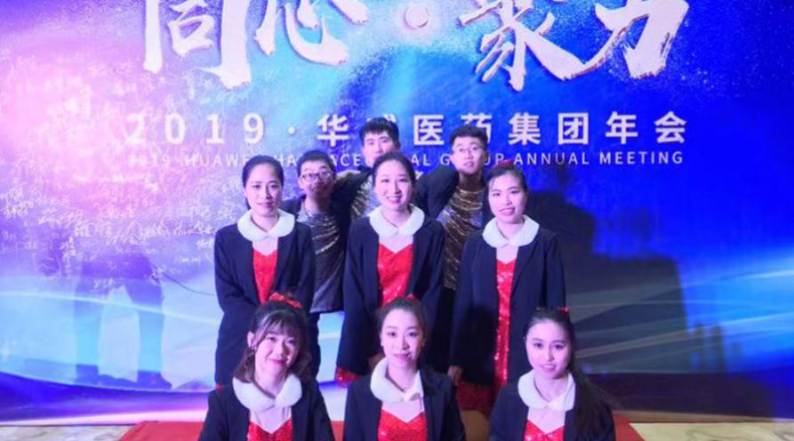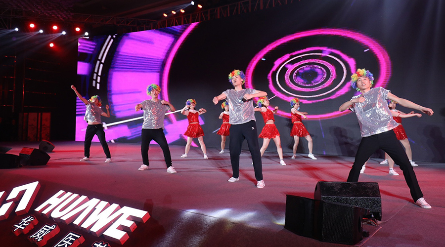 南京华威医药集团创始人、CEO张孝清先生及各部门领导一同上台与《戏说抖音》节目的小伙伴们共舞,燃爆2019年年会,让现场气氛达到最高。