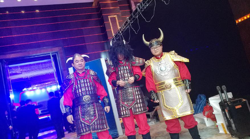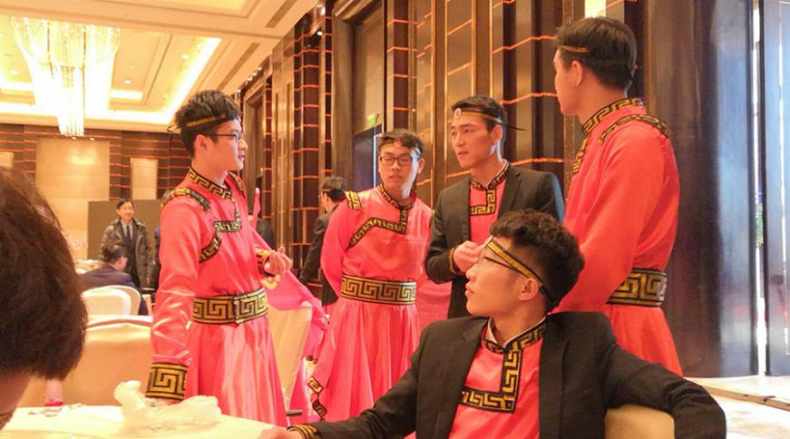 作为今年年会节目的开场舞《万马奔腾》的表演者,小伙子们格外重视,早早的来到酒店,换上衣服、排队化妆,时不时地还不自觉地“笔画”着舞姿,敬业程度着实让小编钦佩~