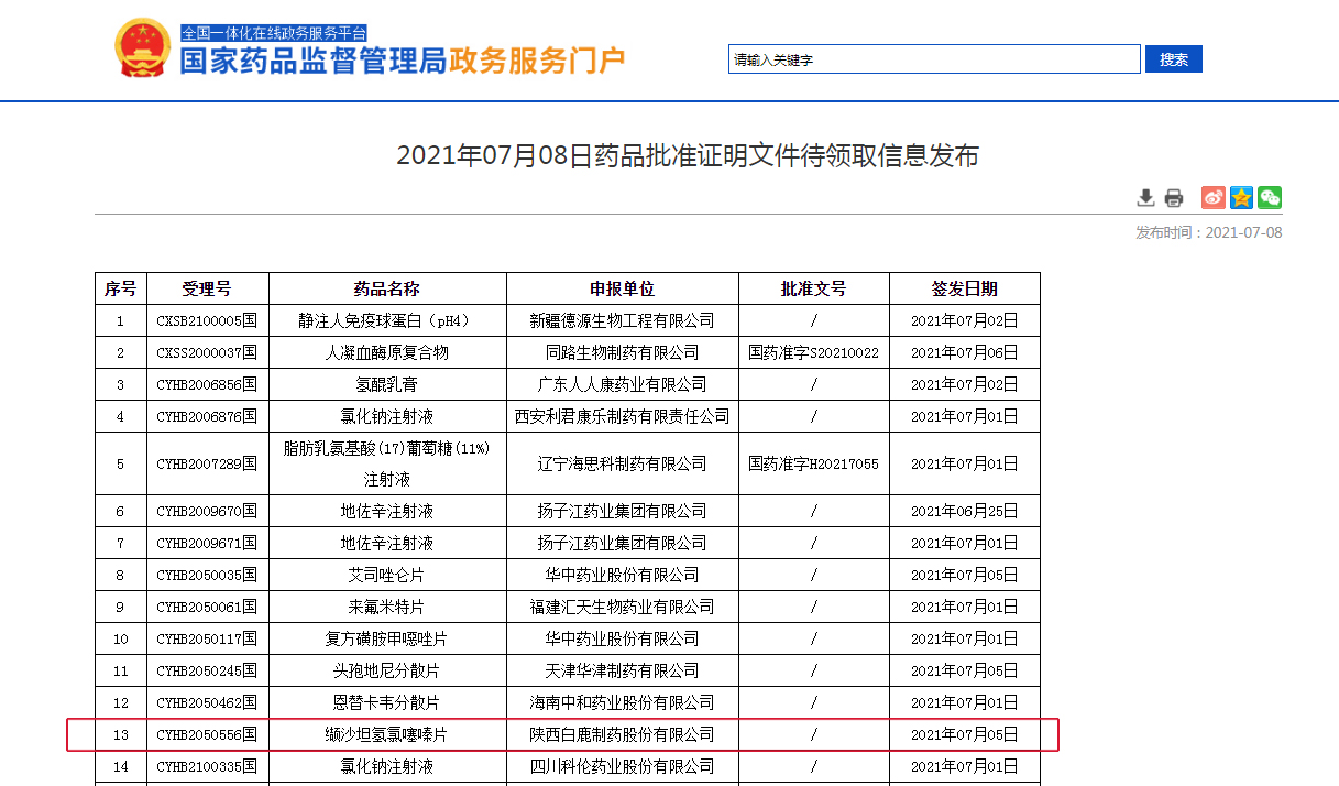 近日,国家药品监督管理局正式发布通知,华威医药受陕西白鹿制药股份有限公司委托的缬沙坦氢氯噻嗪片项目正式通过仿制药质量和疗效一致性评价。值得关注的是,这是国内第四家通过缬沙坦氢氯噻嗪片的企业。