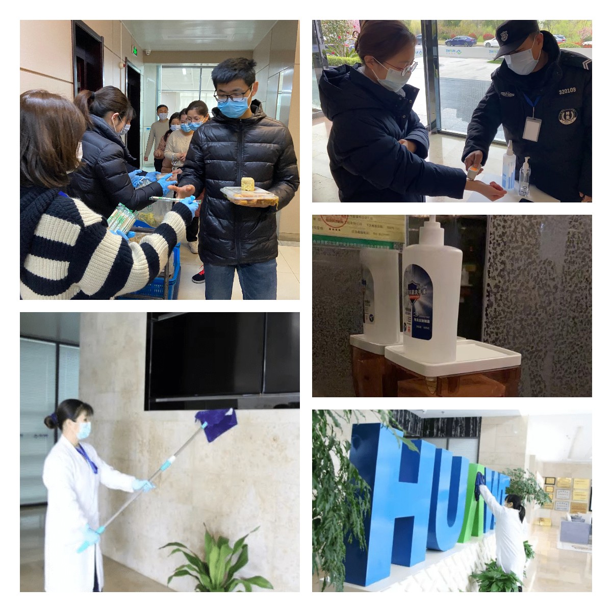 自疫情爆发以来,华威医药高度重视,第一时间成立防疫小组,把科学防控疫情及做好相关保障作为工作的“头等大事”。对进出人员进行疫情核查,每天进行健康监测;配置口罩、专用手套、消毒液、酒精等防护物资;对各楼层办公楼、实验室、仓库、食堂、道路等区域进行消毒,不留死角;严格做好食堂环境卫生和就餐管理,分盒包装、统一配送;设立口罩专用回收垃圾箱等设施;通过制度落实、物资保障、科学防护等方面,避免发生聚集性感染。