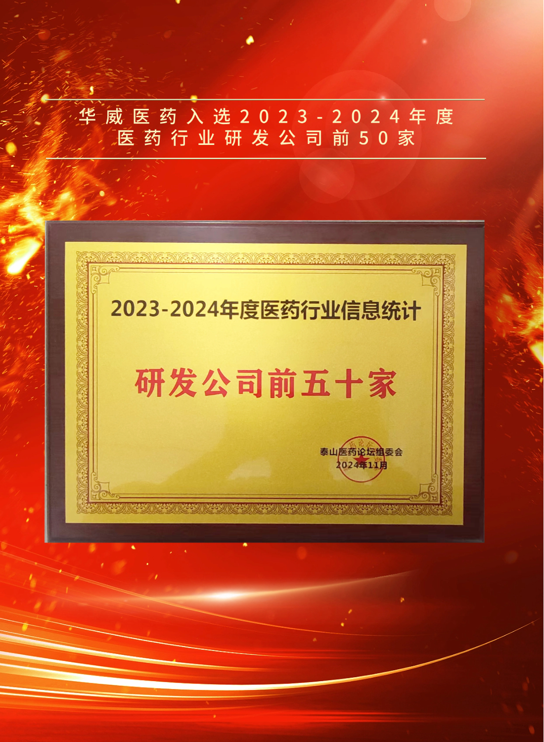 近日,第三届泰山医药论坛暨“2023-2024年度医药行业信息发布会”在山东省济南市盛大举行,南京华威医药科技集团有限公司(以下简称“华威医药”)凭借其在医药研发领域的卓越贡献和技术创新能力,荣耀入选“2023-2024年度医药行业研发公司前50家”。